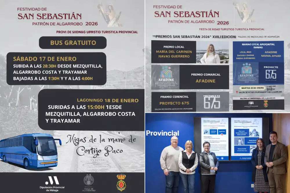 El martes 20 de enero, en el salón de actos del Ayuntamiento, se celebrará la entrega de la XVII edición de los premios San Sebastián 2026 ‘Villa de Algarrobo’, galardones con los que se distingue la labor y la trayectoria de personas y colectivos en los ámbitos local, comarcal y provincial.  En este sentido, la alcaldesa ha afirmado que “los valores de entrega y valentía de nuestro patrón son la base de lo que queremos transmitir con nuestros premios”.