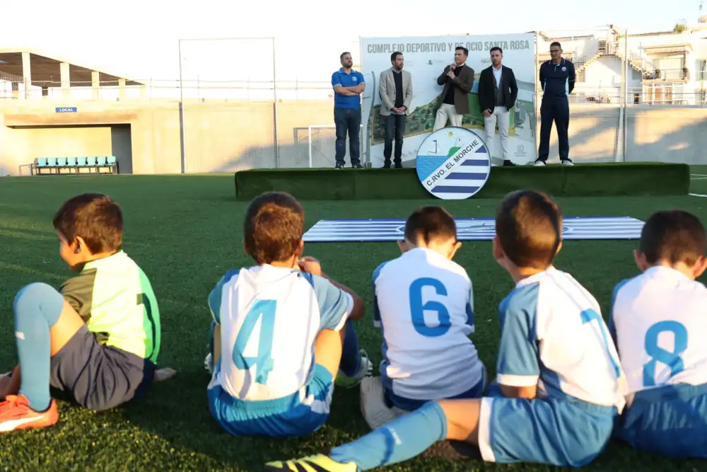 El nuevo campo de fútbol ‘Antonio González’ de El Morche ha sido inaugurado en el transcurso de un acto multitudinario con el apoyo de cientos de vecinos y familias entre el público asistente. Está ubicado en el complejo deportivo y de ocio Santa Rosa, que ahora afronta su segunda fase con un presupuesto de 4,5 millones de euros. La inauguración ha contado con la presencia de Pepi González Bueno, hermana del histórico dirigente y presidente honorífico del Club Recreativo El Morche que da nombre al campo de fútbol.
